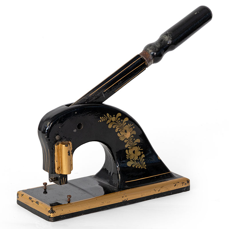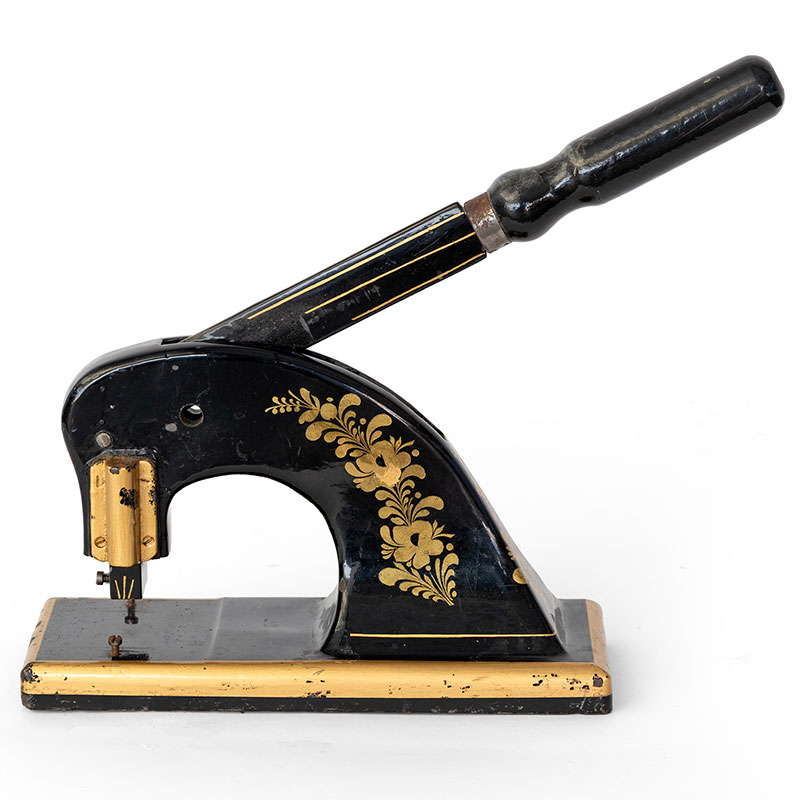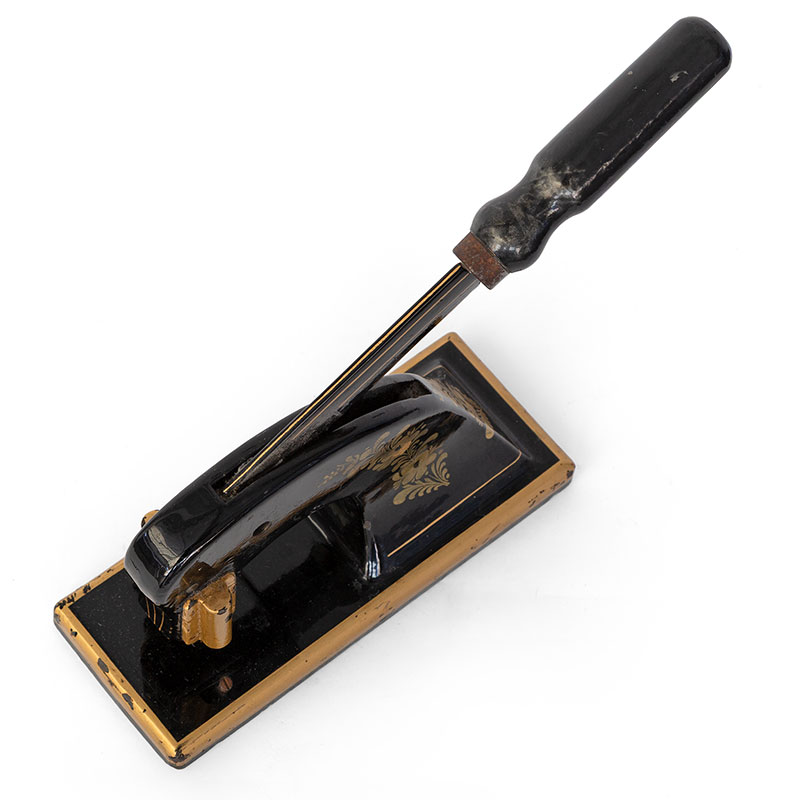 Antique heavy and unusually large cast iron printers stamp with gold decoration. (c.1880)