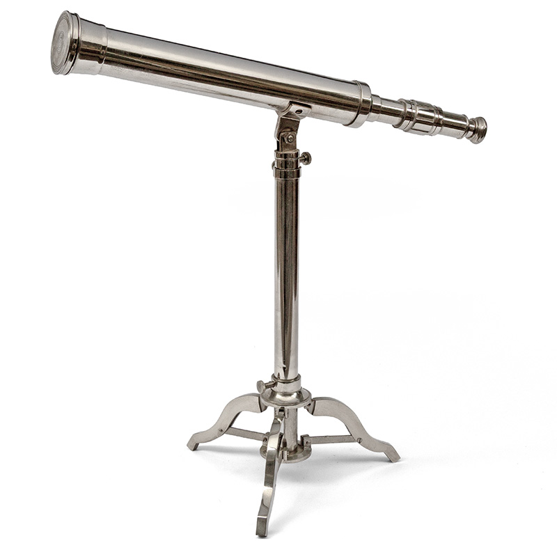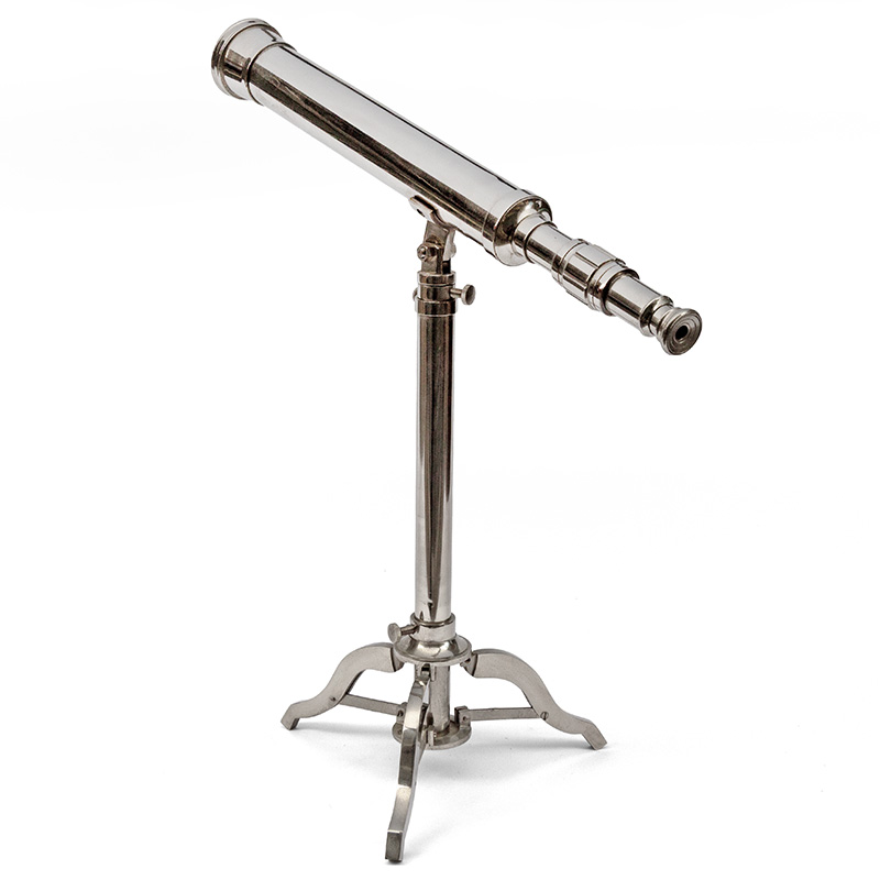 Adjustable tabletop nickel plated telescope with tripod base. (c.1920).